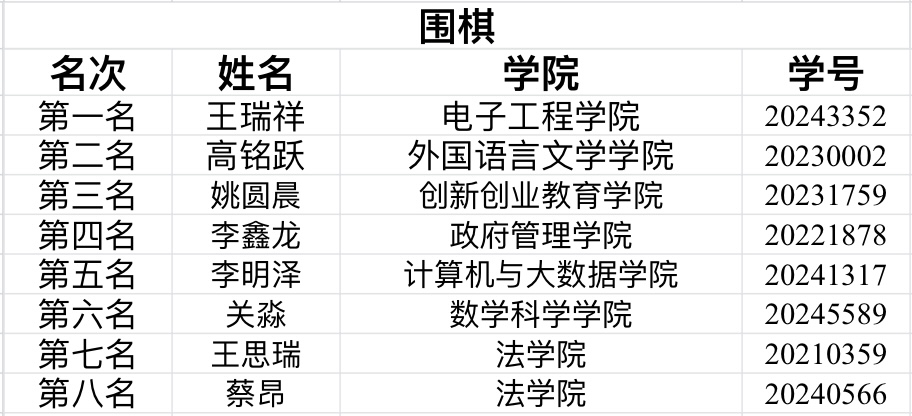 在本次项目中,我院李明泽成功取得围棋类比赛第五名。