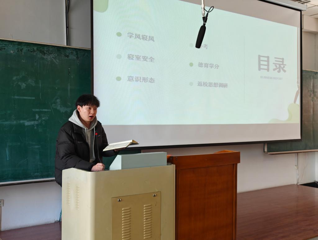 2022级辅导员耿继祥对上一学期的工作进行了全面回顾和总结,向同学们重点强调了关于选课制度、创业学分及综合素质评价等相关问题。参与志愿活动可加德育学分,完善综合素质。