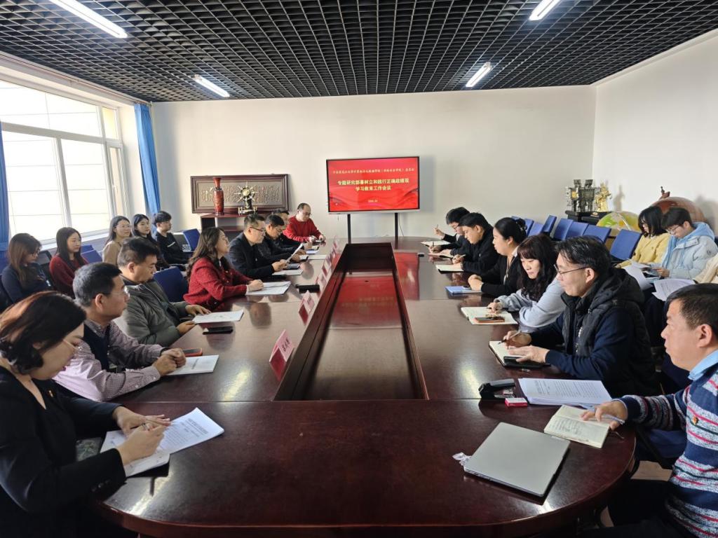 会上,院长王磊传达了中央党的建设工作领导小组会议精神、省委常委会会议精神以及《关于在全党开展树立和践行正确政绩观学习教育的通知》要求;副书记张立才对学校党委印发的《关于在全校开展树立和践行正确政绩观学习教育的实施方案》进行解读;书记姜晶玲领学“习近平总书记地方工作期间坚持正确政绩观生动实践”案例。