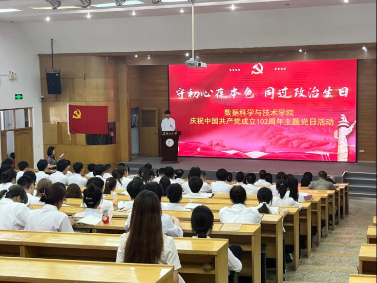 每名党员都有两个生日,一个是自然生日,昭示着“生命的开始”;一个是政治生日,代表着“在党的初心”。为深入学习党的二十大精神,贯彻习近平新时代中国特色社会主义思想,落实学校主题教育和能力作风建设“工作落实年”的要求,6月30日下午,数据科学与技术学院全体师生党员、入党积极分子代表齐聚阳光讲坛举行庆祝中国共产党成立102周年“守初心葆本色,同过政治生日”主题党日活动,教育引导全体党员铭记初心使命,永葆党员本色。本次活动由学院党总支委员、团委书记邵明琛主持。